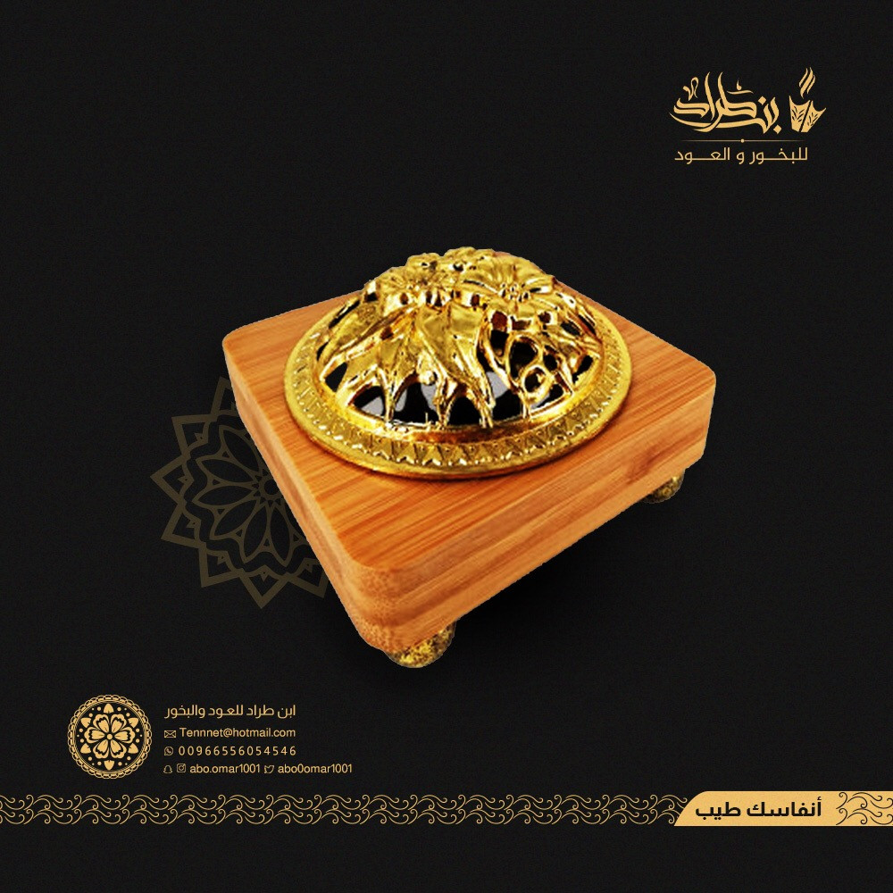 خيارٌ فاتنٌ لمبخرة لطيفة من الخشب والمعدن الذهبي اللامع.. حجم مناسب ومظهر أخّاذ.